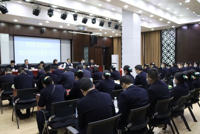 为安排部署2023年度重点工作,推动完成经营发展目标,3月2日晚19:00,金堂汇金村镇银行在金鹰路三楼会议室召开了2023年经营发展工作会。全体行领导,支行和部门负责人、客户经理以及部分柜面员工代表参加会议。