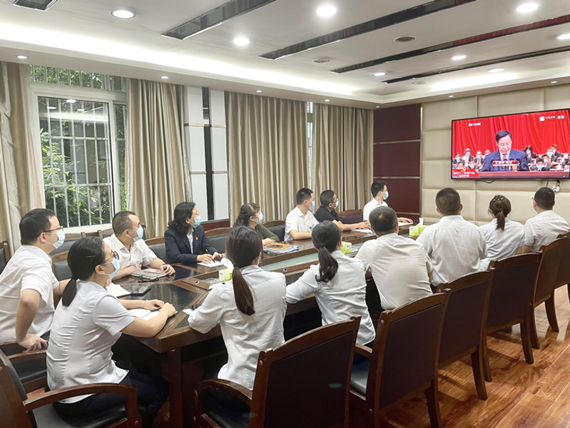 2022年5月27日上午9时,汇金银行党支部组织在线观看中国共产党四川省第十二次代表大会开幕会,全体党员、预备党员、发展对象、积极分子参加观看。