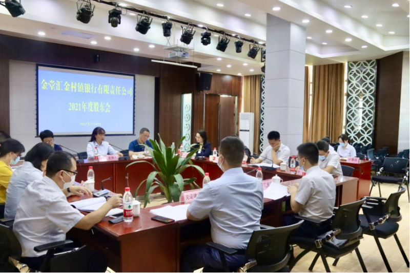 2022年5月6日下午3:30,金堂汇金村镇银行在金鹰路办公区三楼会议室召开2021年度股东会。我行股东出席会议,发起行自贡银行董事会秘书雷从哲出席会议并进行指导,我行董事、监事、高级管理人员列席会议。人行金堂县支行王东行长、四川银保监局金堂监管组和云副组长莅临指导。我行法律顾问四川希正律师事务所杨可胜律师列席见证。