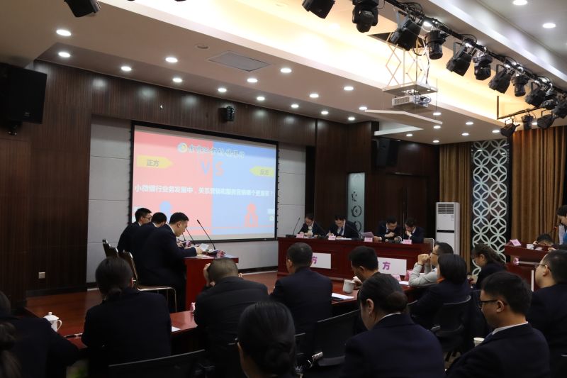 在决赛第一场“小微银行业务发展中,关系营销和服务营销哪个更重要”辩论中,正反双方针锋相对,从小微银行客群、产品特点、市场环境等方面出发,充分阐述实际业务发展中关系营销和服务营销的重要性,特别是以本行营销之星为例,分别论证两者孰更重要。在最后的冠亚军争夺战中,正反双方围绕“房地产税利大于弊还是弊大于利”,从房地产税出台的背景、试点情况、税务数据等方面进行论述,针对国家和个人、短期和长期等不同角度展开激烈辩论,唇枪舌战、金句频出,引来阵阵喝彩和掌声。