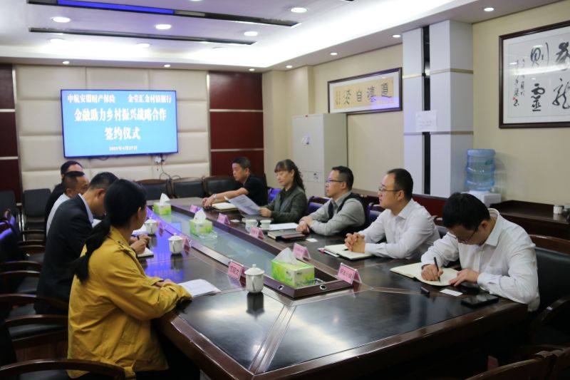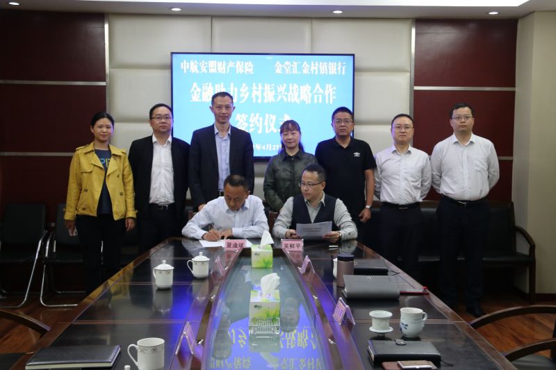 为深入贯彻落实党中央、国务院、各级政府、人民银行、监管部门关于高质量服务乡村振兴的相关决策部署,持续保障小微三农金融供给,提升农村基础金融服务质效,2021年4月27日,金堂汇金村镇银行(以下简称我行)与中航安盟财产保险公司(以下简称中航安盟)举行金融助力乡村振兴战略合作签约仪式。我行董事长甘永军、行长吴鲜平、行长助理李盛、相关部门负责人,中航安盟财产保险公司成都中心支公司总经理吴毅、金堂营销服务部总经理夏逢斌、省公司财险部相关人员等出席仪式。