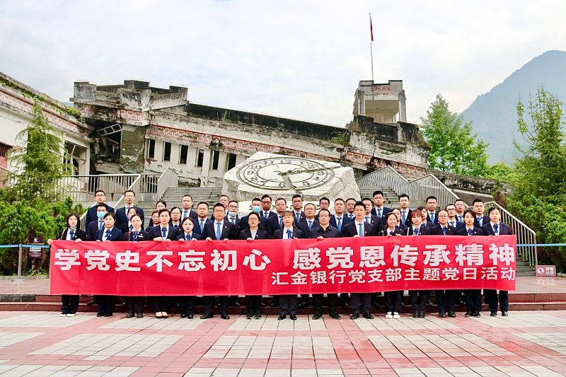 铭记历史,传承汶川精神;缅怀同胞,致敬抗震英雄。2021年4月13日上午,在建党100周年纪念日即将到来之际,汇金银行党支部组织40多名党员、预备党员、积极分子及各支行、部门主要负责人,前往汶川大地震震中映秀镇,开展“学党史不忘初心 感党恩传承精神”主题党日活动。