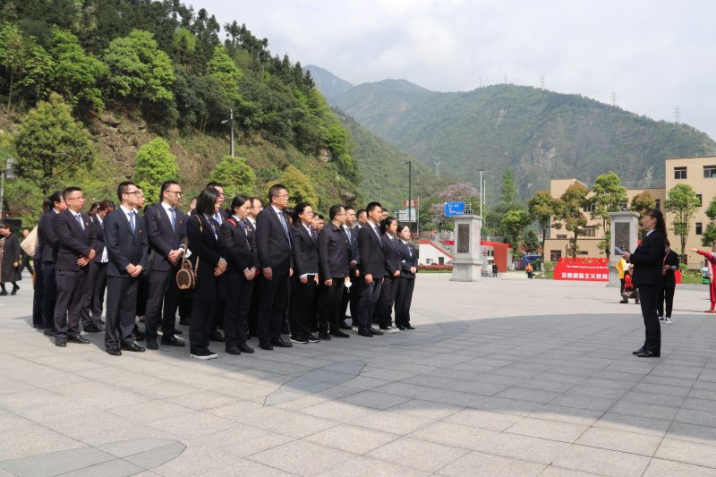 在漩口中学遗址“5.12”纪念碑前,全体人员默哀一分钟、三鞠躬,依次敬献鲜花,表达对地震中不幸遇难同胞的缅怀。在家国情怀宣誓广场,党支部书记甘永军同志带领全体党员、预备党员,面对庄严的党旗,重温入党誓词,再次宣誓“为共产主义奋斗终身”。