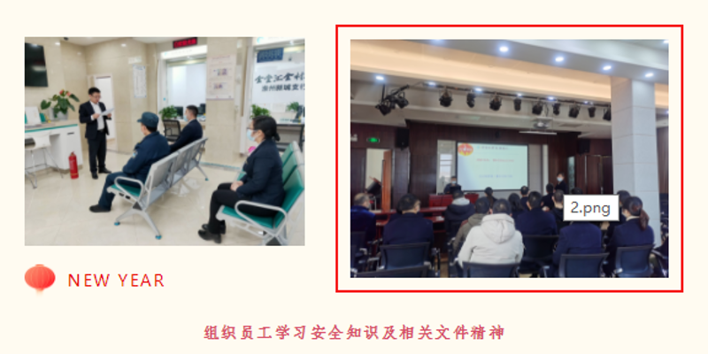 在疫情防控形势依然严峻的情况下,通过节前安全大检查及消防演练,进一步提升全行员工安全意识及应急处置能力,确保度过欢乐平安春节假期。
