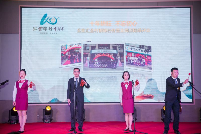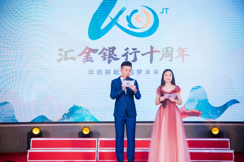 2020年12月15日下午,一场别开生面的线上庆祝活动在金堂华美达安可酒店5楼华景厅隆重举行。现场没有观众,只有演员们分批次出场、退场,全行员工通过在线直播方式观看。这是“砥砺耕耘 追梦未来”汇金银行十周年线上庆祝活动,在疫情特殊时期,汇金人用这种特殊的方式庆祝汇金银行的十周岁生日。