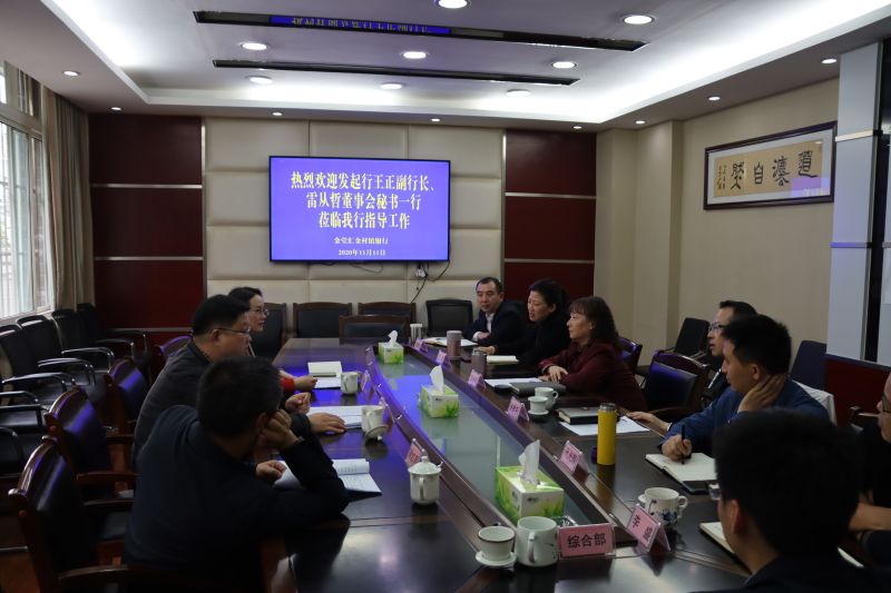 2020年11月11日,发起行(自贡银行)副行长王正、董事会秘书雷从哲一行莅临我行指导工作并视察网点建设情况。