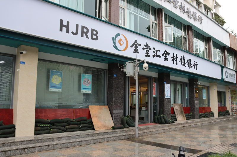 2020年8月11日至8月12日,金堂县普降大到中雨,雨量50到80毫米,都江堰、新都、郫都、青白江、德阳等上游地区持续暴雨,局部地方有特大暴雨,雨量高达250到300毫米,金堂城区汛情严峻,最高洪峰流量达6590m2/秒,县城部分城区被淹,淮州新城部分区域出现内涝。金堂县防汛抗旱指挥部先后发布橙色汛情预警(II级)、红色汛情预警(I级),提前组织部分区域居民、商铺紧急转移,全力进行抗洪抢险。面对可能出现的洪灾,金堂汇金村镇银行高度重视,立即启动防汛应急机制,自8月11日起,连续奋战两个昼夜,全方位做好防汛应急工作,确保全部网点正常营业。