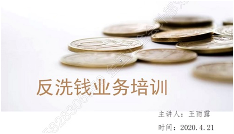 为减少疫情期间人员聚集,人行成都分行营管部创新培训方式,通过“云课堂”开展“云培训+云测试”,选择我行作为首家线上培训的试点单位。王雨露老师从国际反洗钱法律体系、义务机构反洗钱基本职责、客户身份资料及交易记录保存、大额和可疑交易报告及执法检查发现的不足等方面进行了深入解读和指导。此次培训使我行参训人员对反洗钱主体责任、工作目标及方法有了更清晰的认识,为我行进一步提升反洗钱工作水平指明了方向。