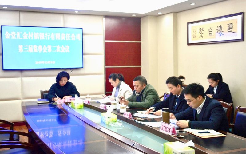 2019年12月5日,金堂汇金村镇银行第三届监事会第二次会议在十里大道总部会议室召开,会议由监事长艾平主持,我行监事出席会议。