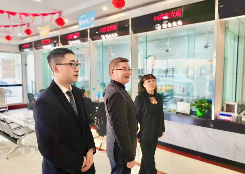 2019年11月14日,发起行(自贡银行)董事长袁益富、董事会秘书雷从哲一行莅临我行,开展“不忘初心、牢记使命”主题教育专题调研。先后视察我行淮口支行、淮州新城支行(筹)、机房建设情况,实地了解我行支农支小情况,亲切慰问一线员工;在往返各个调研点的路途中,听取我行工作报告并对相关工作进行指导。我行董事长甘永军、行长吴鲜平陪同调研。