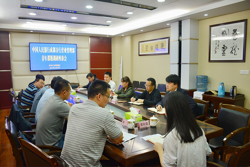 2019年4月10日上午,人行成都分行营业管理部货币信贷处副处长刘飞率领青年课题组一行5人莅临我行调研,人民银行金堂县支行副行长张灏陪同调研。