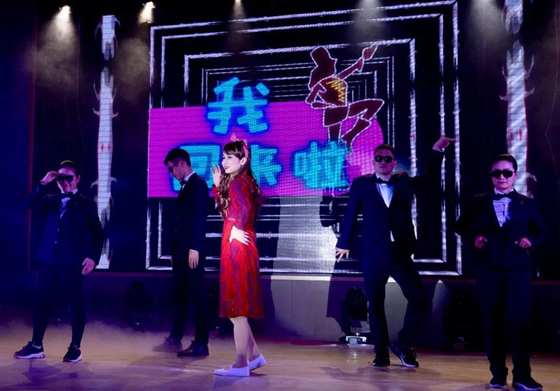 全体行领导带来的劲爆《汇金猫步舞》正式开启了2019年新春年会的文艺盛宴。音乐剧《奋斗的青春最美丽》、小品《为您服务》、歌舞串烧《工作协奏曲》和《轻松一刻》,反映汇金人兢兢业业工作、全心全意服务客户的作风。诗朗诵《初识汇金》、三句半《众志成城 抗击洪魔》,讴歌“创新、规范、坚韧、厚德”的汇金精神。综合秀《年代秀》、大提琴演奏《没有共产党就没有新中国》(合作伙伴选送),赞颂改革开放40周年伟大成就。小品《借钱》、歌伴舞《千里之外》、舞蹈《汇金猫步舞》、《掀起你的盖头来》、《西班牙斗牛舞》,展现汇金人能歌善舞、多才多艺、热情奔放。形式多样的节目,四轮现场抽奖,将年会推向一波又一波的高潮。台上节目精彩纷呈,台下观众欢声笑语,汇聚成一片欢乐的海洋。