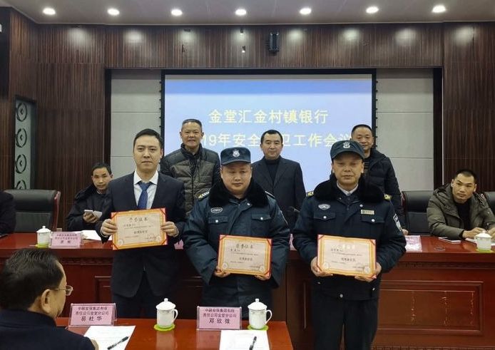 会议通报了2018年安全保卫工作开展及考核情况;表彰了2018年度优秀保安人员;学习了四川银保监局关于岁末年初安全生产和防灾减灾有关工作通知、今冬明春火灾防控工作方案等文件。翁用柱副行长对2019年度安全保卫工作做了部署,与各支行、部门签订了2019安全保卫目标责任书;县公安局专员彭泽鲜高度肯定我行安全保卫工作成果,结合当前治安形势提示重点防范环节,提出2019年强化安保管理的工作要求。