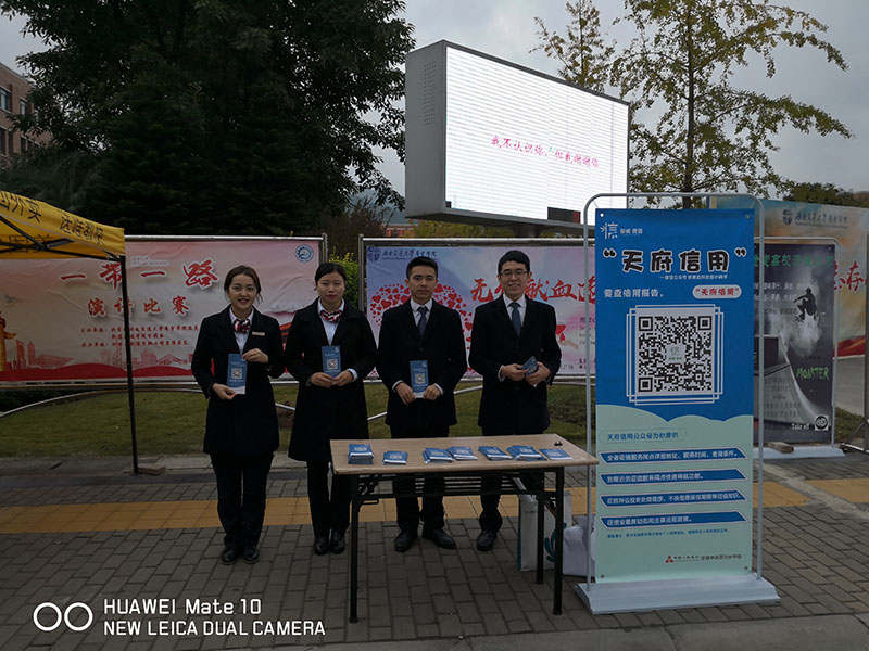 为普及征信知识,增强个人信息保护意识和诚信意识,2018年11月15日,我行结合金融知识普及月走进西南交通大学希望学院开展征信知识进校园宣传活动。