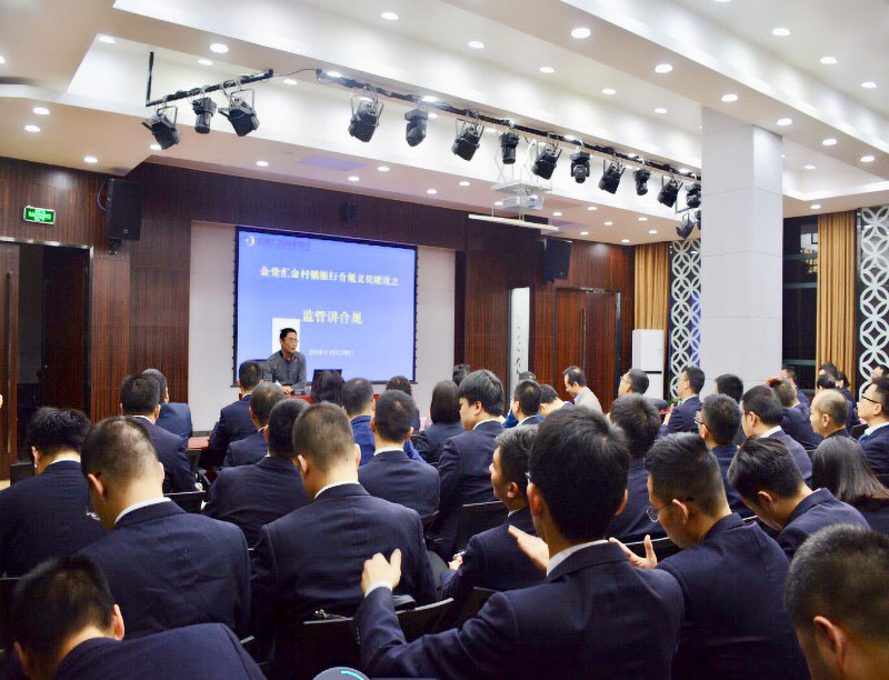 2018年10月30日,在四川银保监局筹备组金堂监管办事处的指导下,金堂汇金村镇银行举办监管讲合规专题培训,邀请原四川银监局案件防控督导办公室主任曾正友做合规讲座。四川银保监局筹备组金堂监管办事处主任雷仕文、监管员陈才玺列席,本行全体高管、员工参加培训。
