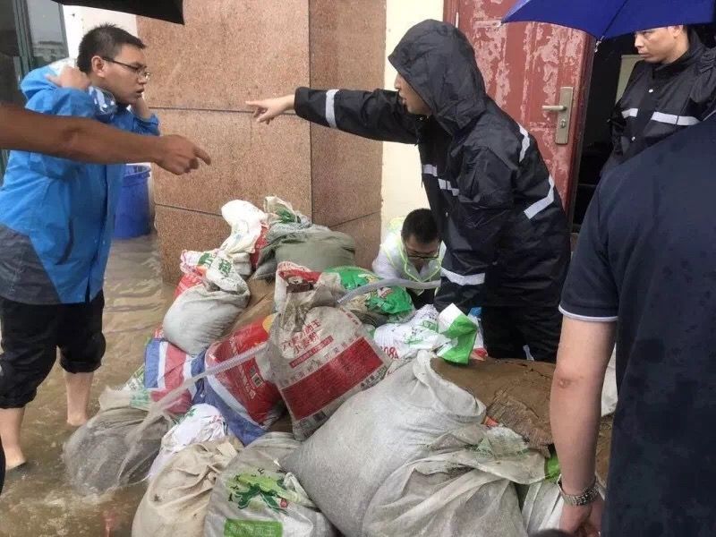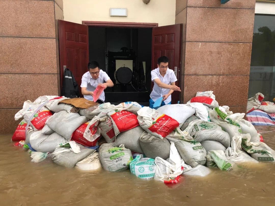 信息科技部技术主管(左起第二位)抗洪抢险图