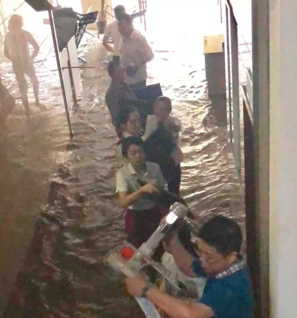 7月11日,营业部大厅进水,到晚上20时左右,水位达到最高点、深度98CM,人员、物资安全受到严重威胁!