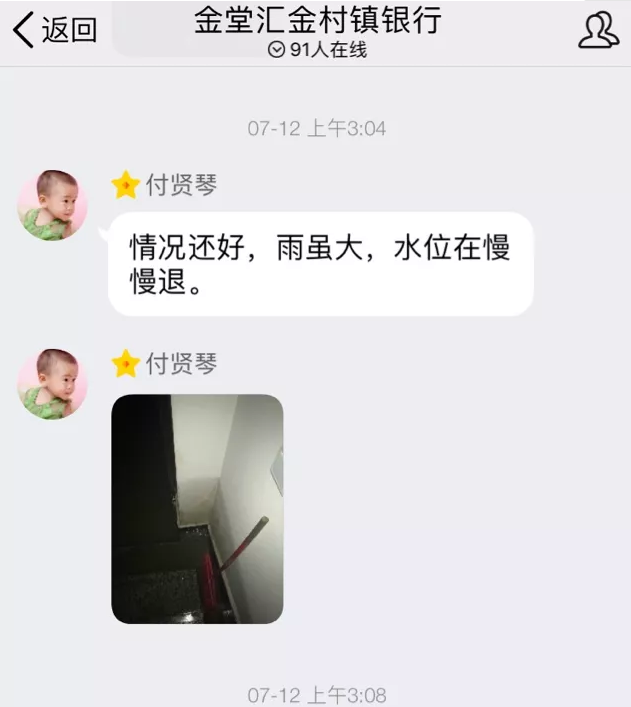 7月11日上午,接到县防汛办红色预警,指挥中心决定各营业网点提前停止营业,全员投入抗灾自救。