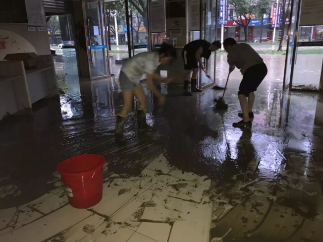(清理营业部大厅淤泥)