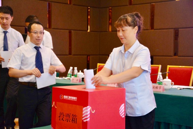 大会进行了支部委员会换届选举。经中共金堂县两新组织党工委批准,我行本届党支部委员会于2015年7月8日正式履职,任期即将届满。根据党章规定,我行党支部于2018年6月19日、26日分别向中共金堂县两新组织党工委报送了换届申请和候选人名单,并得到了正式批复。按照基层党组织换届选举规定,本次换届实行差额选举,全体党员通过无记名投票方式选出了新一届拟任支部委员,拟任支部委员选举拟任支部书记、副书记并进行了职责分工。本次换届选举确定下一届支部委员拟任人选为党支部书记甘永军、副书记吴鲜平、纪律委员艾平、组织委员张明华、宣传委员鲁明婧,在会后报中共金堂县两新组织党工委审批。
