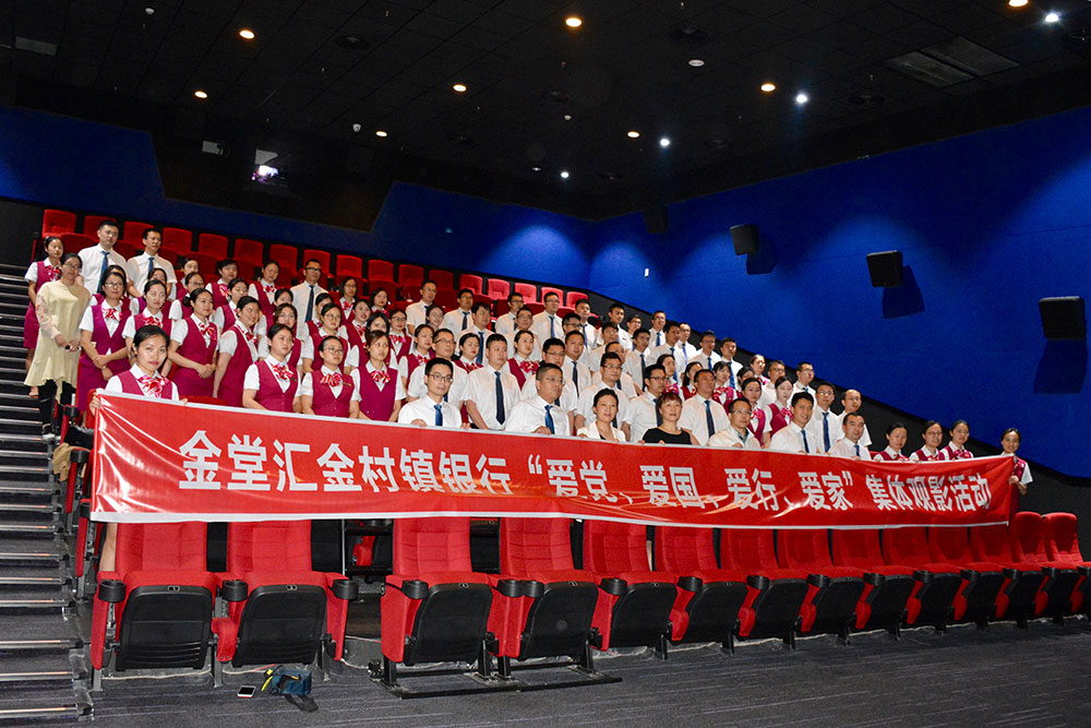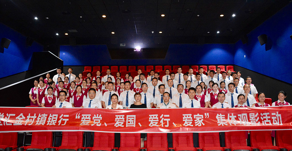 为深入学习党的十九大精神,弘扬新时代正能量,深化汇金特色企业文化建设,庆祝“五•四”青年节,5月3日晚,我行在金堂万达影城举行“爱党、爱国、爱行、爱家”集体观影活动,全体班子成员、全行员工参加观影。