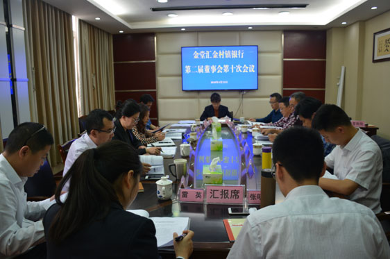 2018年4月23日,金堂汇金村镇银行第二届董事会第十次会议在十里大道总部会议室召开。人民银行金堂县支行行长谭思贵,四川银监局金堂监管办主任雷仕文、监管员粟玉兰莅临指导。会议由董事长甘永军主持,我行董事出席会议,部分监事列席会议。