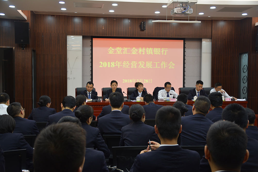 为进一步明确经营发展方向,分解落实年度目标任务,金堂汇金村镇银行于3月28日召开2018年经营发展工作会,全体行领导、员工参加会议。