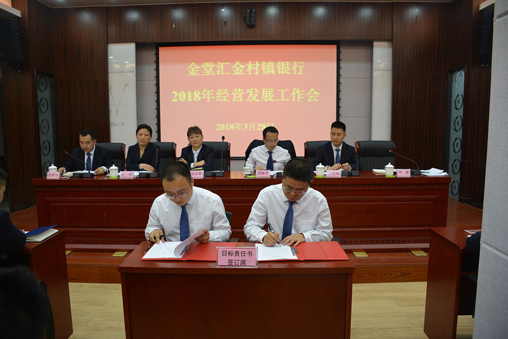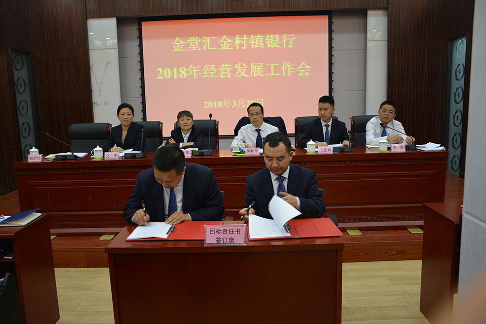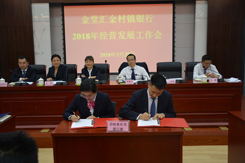 在会上,李盛行长助理对经营发展目标分解、零售小微业务考核文件进行了解读,三个支行、部门代表与分管(联系)行领导签署了2018年目标责任书,李盛行长助理、翁用柱副行长、代光辉副行长对分管工作做了安排部署,艾平监事长对监事会工作和分管工作做了安排部署。