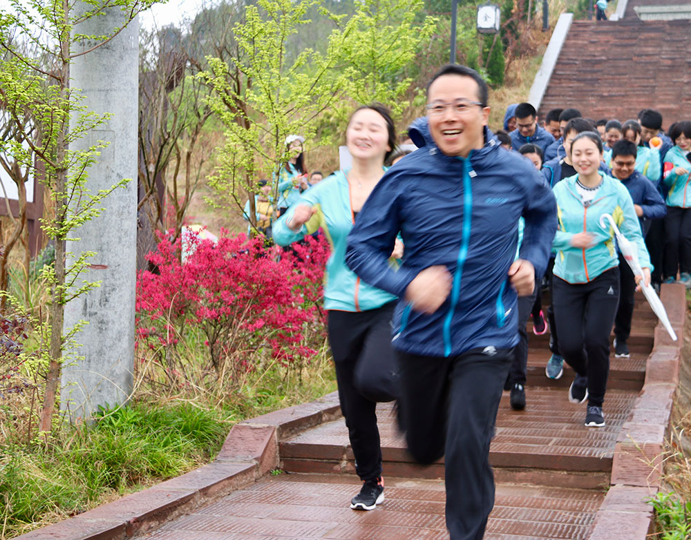 天空下着淅淅沥沥的春雨,但挡不住汇金人高涨的热情。在一片激昂的口号声中,本次登山比赛正式拉开帷幕。随着主持人一声令下,“汇金猫”队、“汇金宝”队、“汇金果”队、“汇金豆”队四支参赛队伍如离弦之箭冲出起跑线。在比赛中,各队之间争先恐后,你追我赶,不乏竞争精神;队员之间团结协作,互帮互助,不失集体风范。