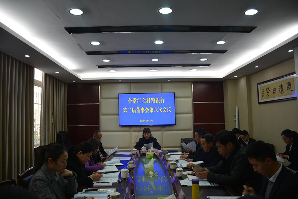 2017年12月19日,金堂汇金村镇银行第二届董事会第八次会议在十里大道总部会议室召开。四川银监局金堂监管办主任雷仕文、监管员粟玉兰,人民银行金堂县支行副行长张灏莅临指导。会议由董事长甘永军主持,我行董事出席会议,监事列席会议。