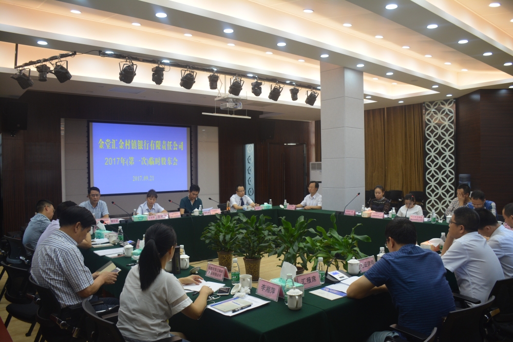 本次参会股东共代表本行有效表决股权数25815万元,占总股本的99.29%,会议合法有效。会议表决通过《关于调整2017年度财务预算报告的议案》、《关于修订金堂汇金村镇银行有限责任公司章程的议案》、《关于金堂汇金村镇银行股东、董事、监事保密管理办法的议案》三项议案。通报了本行2017年1—8月经营情况及风险状况。