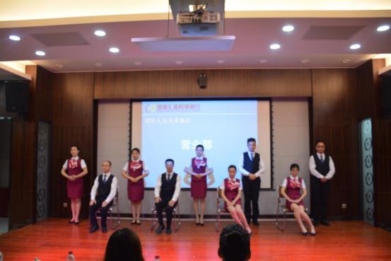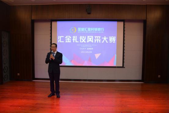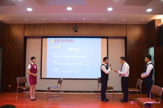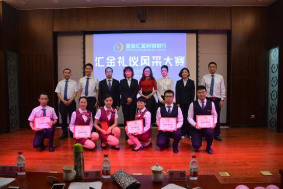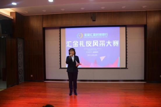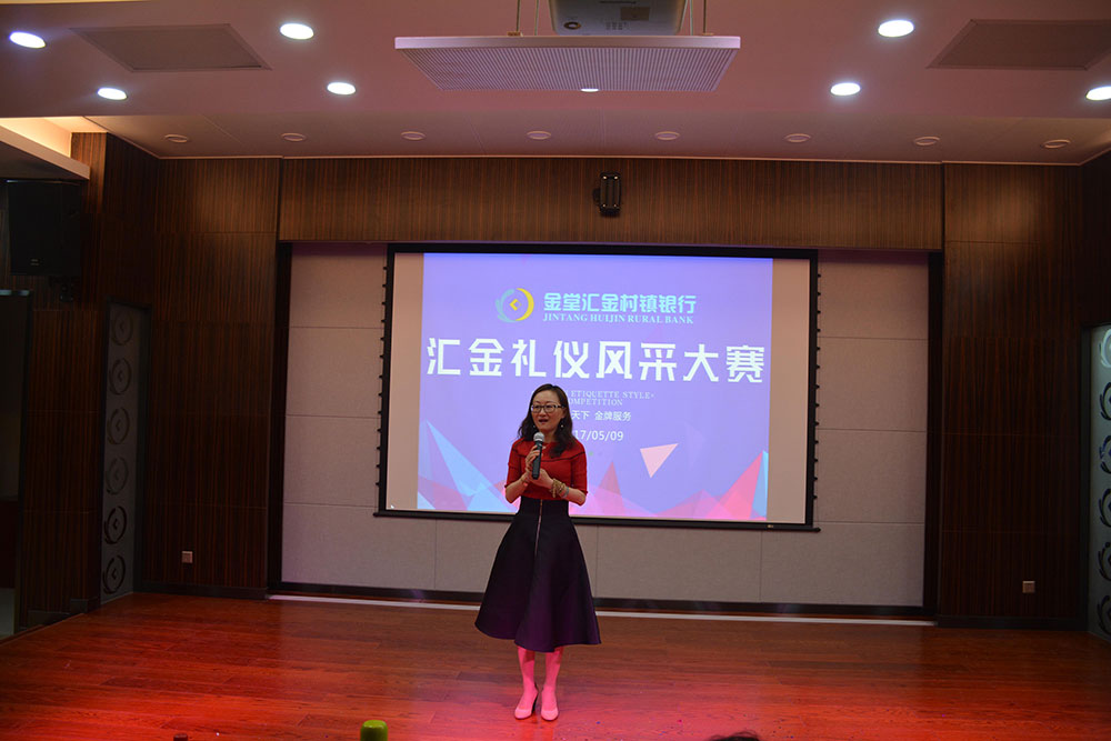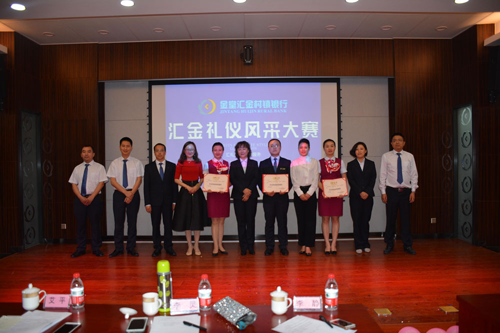 为增强全员服务意识,规范服务行为,促进网点服务形象打造,展示礼仪培训学习成果,推进优质服务工作。5月9日由金堂汇金村镇银行(以下简称我行)团支部组织的以“内强素质,外塑形象”为主题的“汇金礼仪风采”大赛在金鹰路大会议室举行。我行全体行领导,西南航空专修学院李灵副院长、李静老师作为评委出席,全体员工参加了本次比赛。
