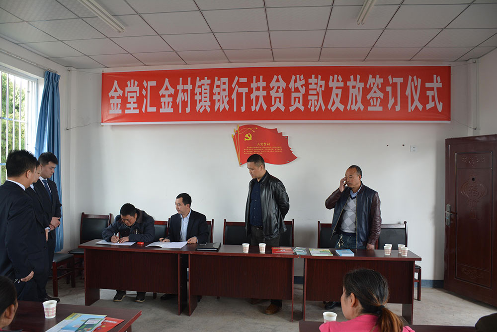 2017年4月1日上午,金堂汇金村镇银行(以下简称我行)在金堂县隆盛镇白果湾村举行了扶贫贷款现场签约仪式。我行副行长翁用柱,隆盛镇党委委员、副镇长周锋等相关人员出席了签约仪式,10户农户代表、1户农业专业合作社参加了签约。