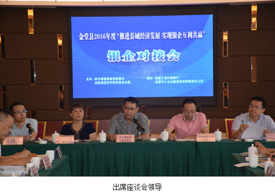 2016年7月20日,由四川银监局金堂监管办(以下简称县银监办)、金堂县经济科技和信息化局(以下简称经信局)主办,金堂汇金村镇银行(以下简称汇金银行)、金堂中小企业融资担保有限责任公司(以下简称中小担)承办的金堂县2016年度“推进县域经济发展,实现银企互利共赢” 银企对接会在金堂县聚能国际酒店会议厅召开。会议由汇金银行行长吴鲜平主持,银监办主任雷仕文、经信局科长杨进、中小担董事长唐中文、汇金银行董事长甘永军出席会议。汇金银行副行长翁用柱、拟任行长助理李盛、各网点负责人与客户经理团队、成都市中菌川派食品有限责任公司、四川新世纪线缆有限公司等26家企业代表参加了本次对接会。
