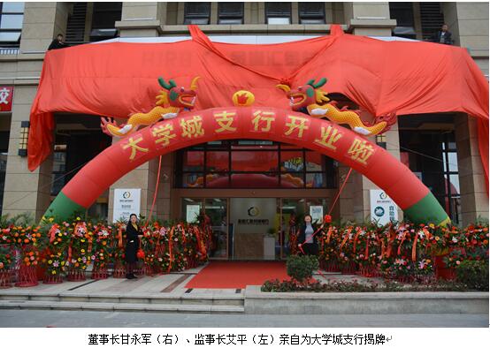 上午10时16分,董事长甘永军、监事长艾平为大学城支行揭幕,行长吴鲜平点燃开业鞭炮。