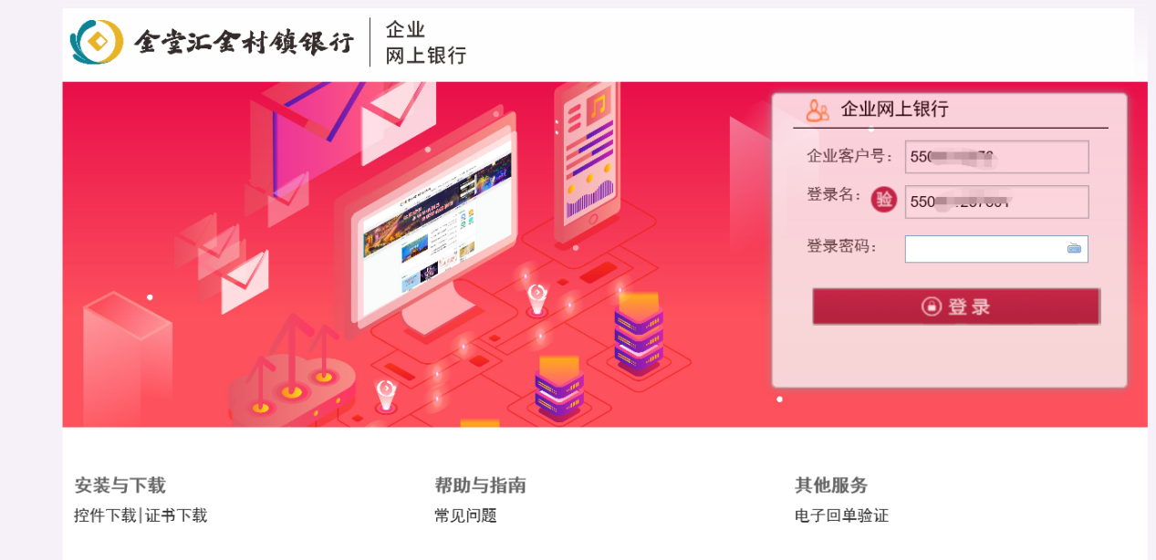 访问金堂汇金村镇银行网站,并选择“企业网上银行登录”。